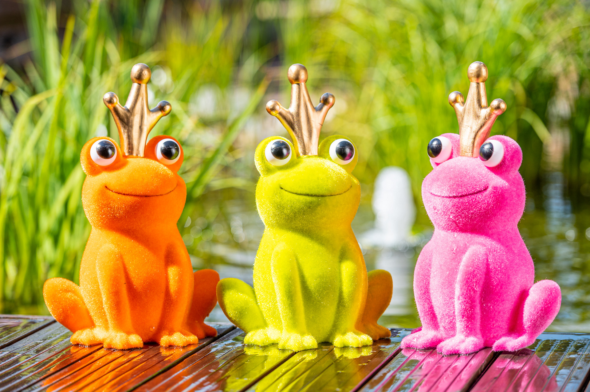 Froschkönig mit Krone, Kunststoff, 43 cm beflockt,5mm